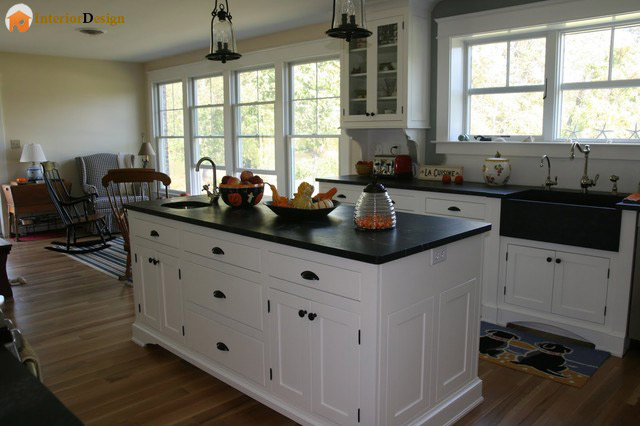 اگر برای پیشخوان از سنگ استفاده کنید معمولا میشه رنگ سیاه و سفید رو پیدا کرد. مثلا مرمر سفید یا سنگ گرانیت ( برای رنگ سیاه ). اما برای خود کابینت باید رنگش کنید. البته رنگ های خیلی تیره چوب هم پیدا میشه.
