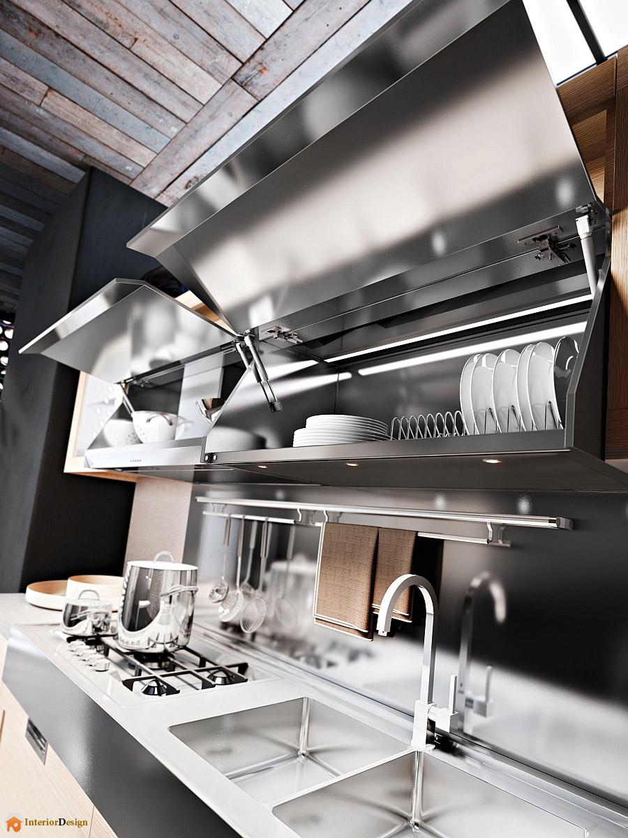 در این پست به مجموعه ای از عکس یک آشپزخانه ایتالیایی با رنگ های نقره ای و سفید و طرح های چوب در کابینت و سقف نگاهی میندازیم.