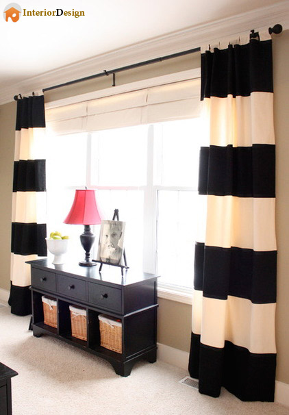 عکس اولی رو نگاه کنید. یک پرده تور که مشخصه خیلی هم ارزانه، اما یک حاشیه رنگی پایین پرده و نحوه آویز کردن پرده به میله پرده جذابیت خاصی بهش داده :
